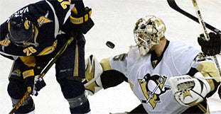 Buffalo setzte den Tabellenfünften der Eastern Conference von Beginn an unter Druck, scheiterte aber am Mann des Spiels, Pittsburgh-Keeper Ty Conklin. Alleine im ersten Drittel entschärfte der Schlussmann der Penguins mit teils akrobatischen Paraden 17 Torschüsse der Sabres. Im zweiten Abschnitt wurde Buffalo für die vielen ausgelassenen Chancen bestraft: Nach 7:28 Minuten erzielte Jarko Ruuto den überraschenden Führungstreffer für die Penguins. Zwei Minuten später stellte Petr Sykora mit einem Power-Play-Tor auf 2:0.