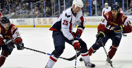 Die Washington Capitals, Spitzenreiter der Southeast Division, kassierten am Montag in der NHL eine 1:5-Abfuhr bei den Atlanta Thrashers. Matchwinner für die Thrashers war Torhüter Kari Lehtonen, der 49 der 50 Torschüsse, darunter zehn von Alexander Owetschkin, entschärfte und sich erst 75 Sekunden vor Spielende geschlagen geben musste.