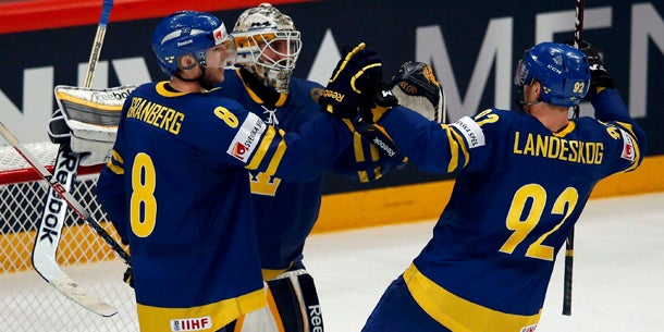 Eriksson verwertete jeweils im Powerplay eine Vorarbeit der Sedins zur Führung (11.) und zum 2:0 (37.). 33 Sekunden vor Schluss fixierte Henrik Sedin mit einem Schuss ins leere Tor den Endstand (60.). Stark auch Torhüter Jhonas Enroth, Clubkollege von Thomas Vanek bei den Buffalo Sabres, der alle 30 Torschüsse parierte und sein zweites "shutout" bei dieser WM feierte.