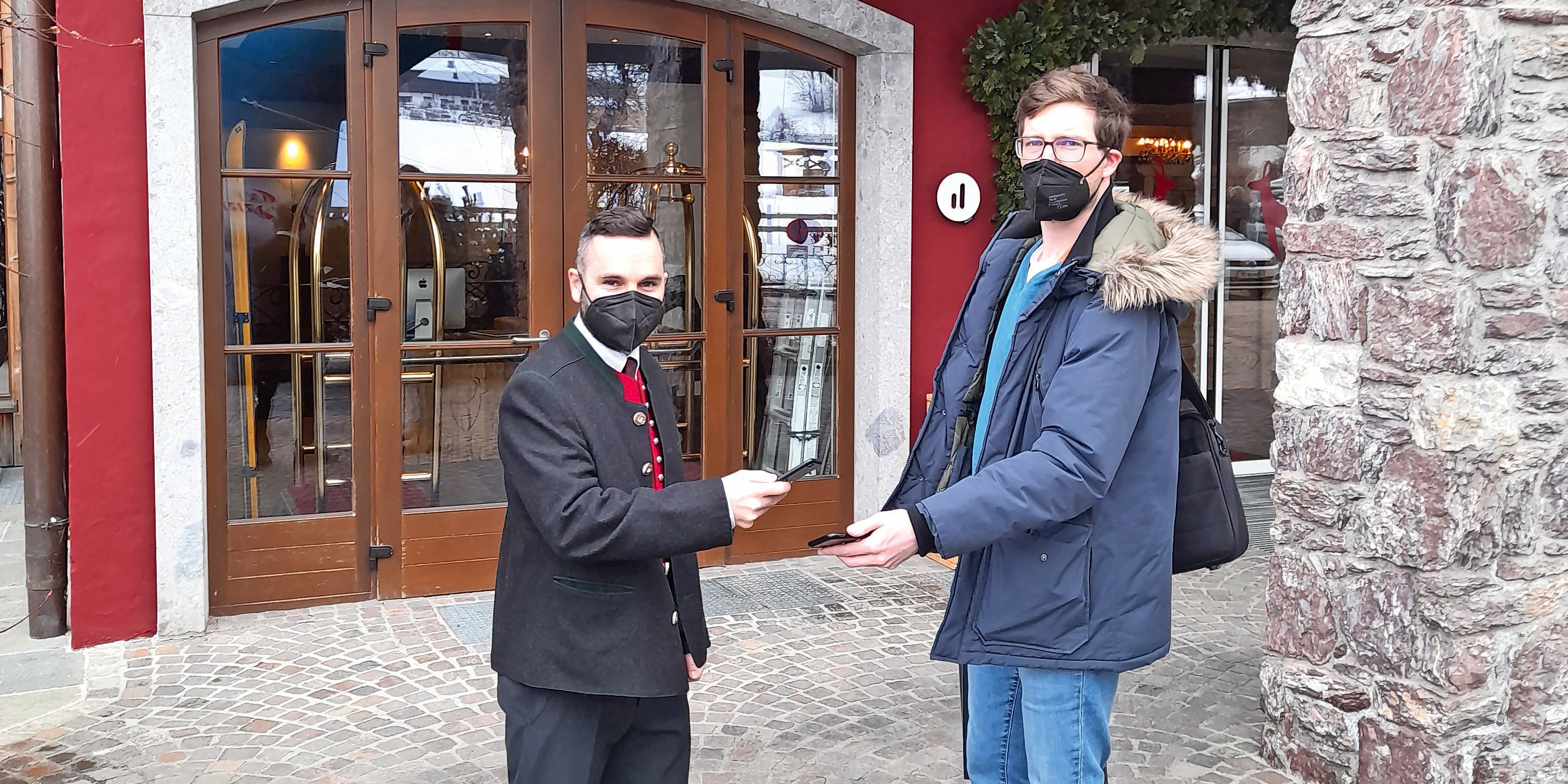 Gespräch: Reporter Michael Stadler mit Kitzhof-Chef Johannes Mitterer.
