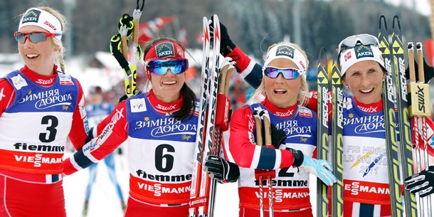 und Marit Björgen triumphierten nach 4 x 5 km in Lago di Tesero souverän 26,2 Sekunden vor Schweden und 45,8 vor Russland. Für Norwegen war es die insgesamt sechste Goldmedaille bei diesen Titelkämpfen.