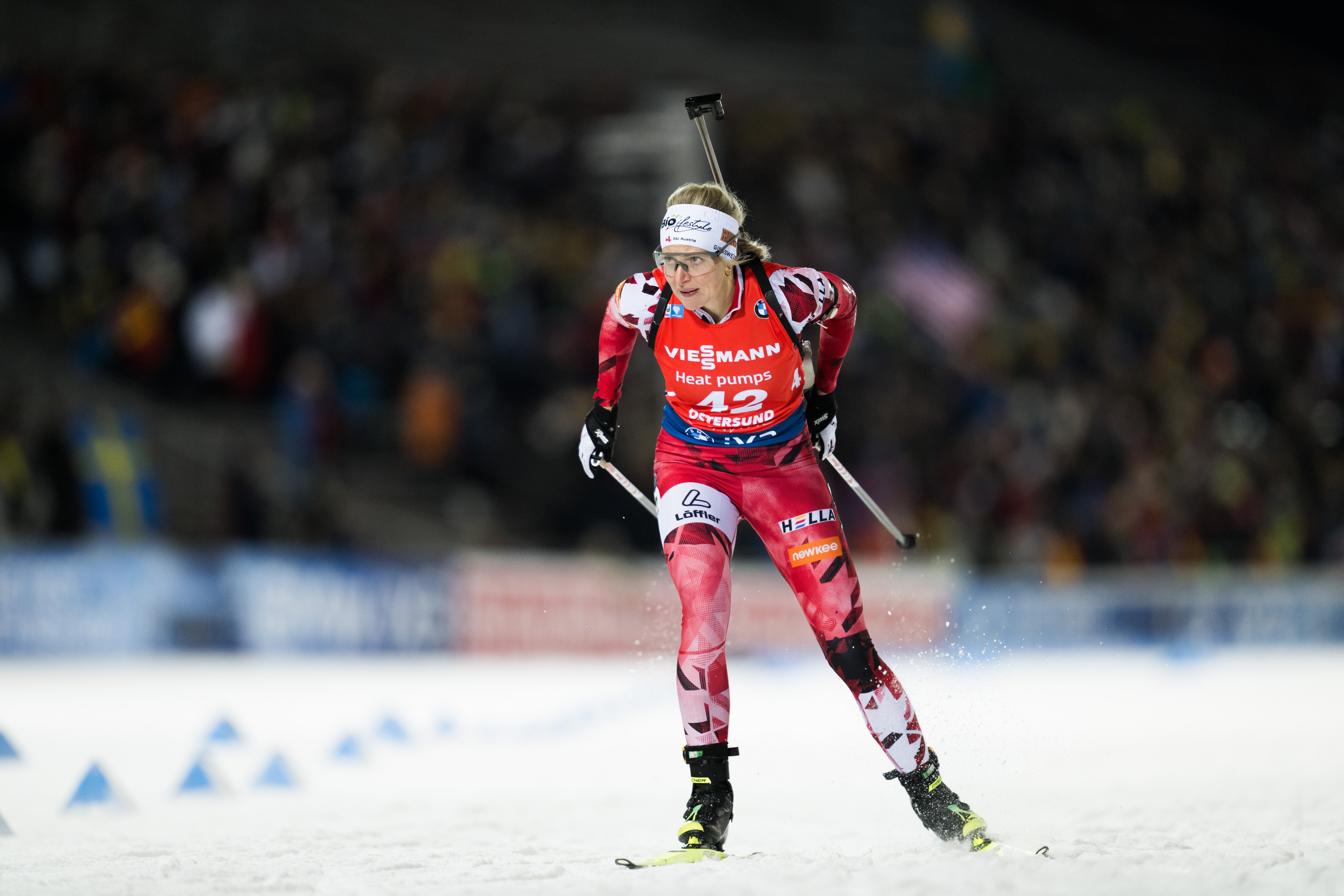 Dritte wurde die Schwedin Anna Magnusson (1/+31,8 Sek.). Die weiteren beiden Österreicherinnen landeten nicht in den Top 25, Anna Gandler (2 Fehlschüsse) wurde 26., Dunja Zdouc (1) 35.