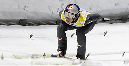 Bewerbs. Wolfgang Loitzl erreichte bei Rückwind und kurzem Anlauf, also