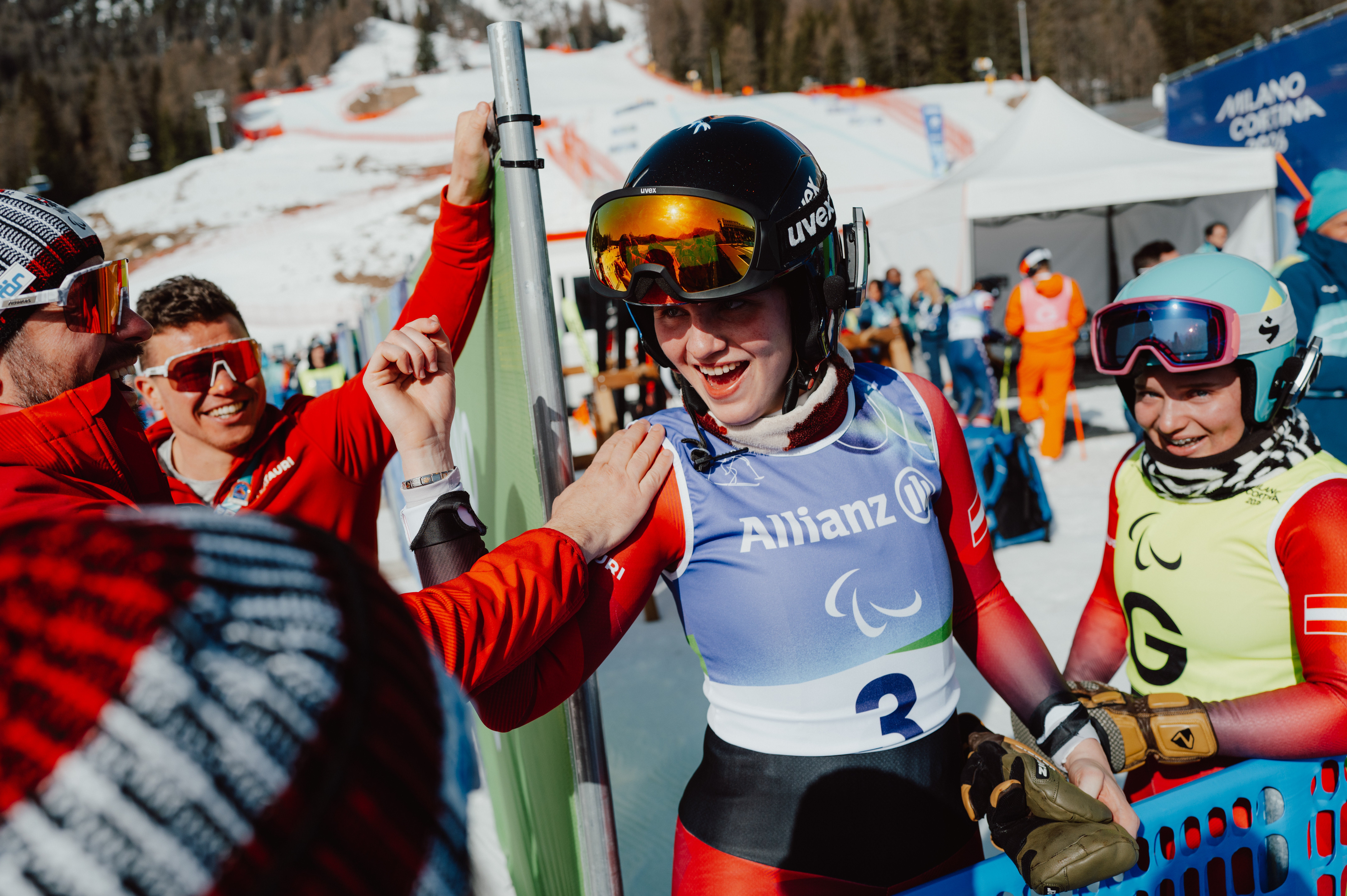 "Wir haben das einfach schon von Anfang an im Gespür gehabt, dass das ein Lauf für uns ist. Auf der Tofana haben wir Gas gegeben, die Sprünge sind um einiges weiter gegangen. Wir haben voll riskiert und es hat sich ausgezahlt", meinte die Niederösterreicherin Aigner, die nun dreifacher Paralympics-Champion ist.