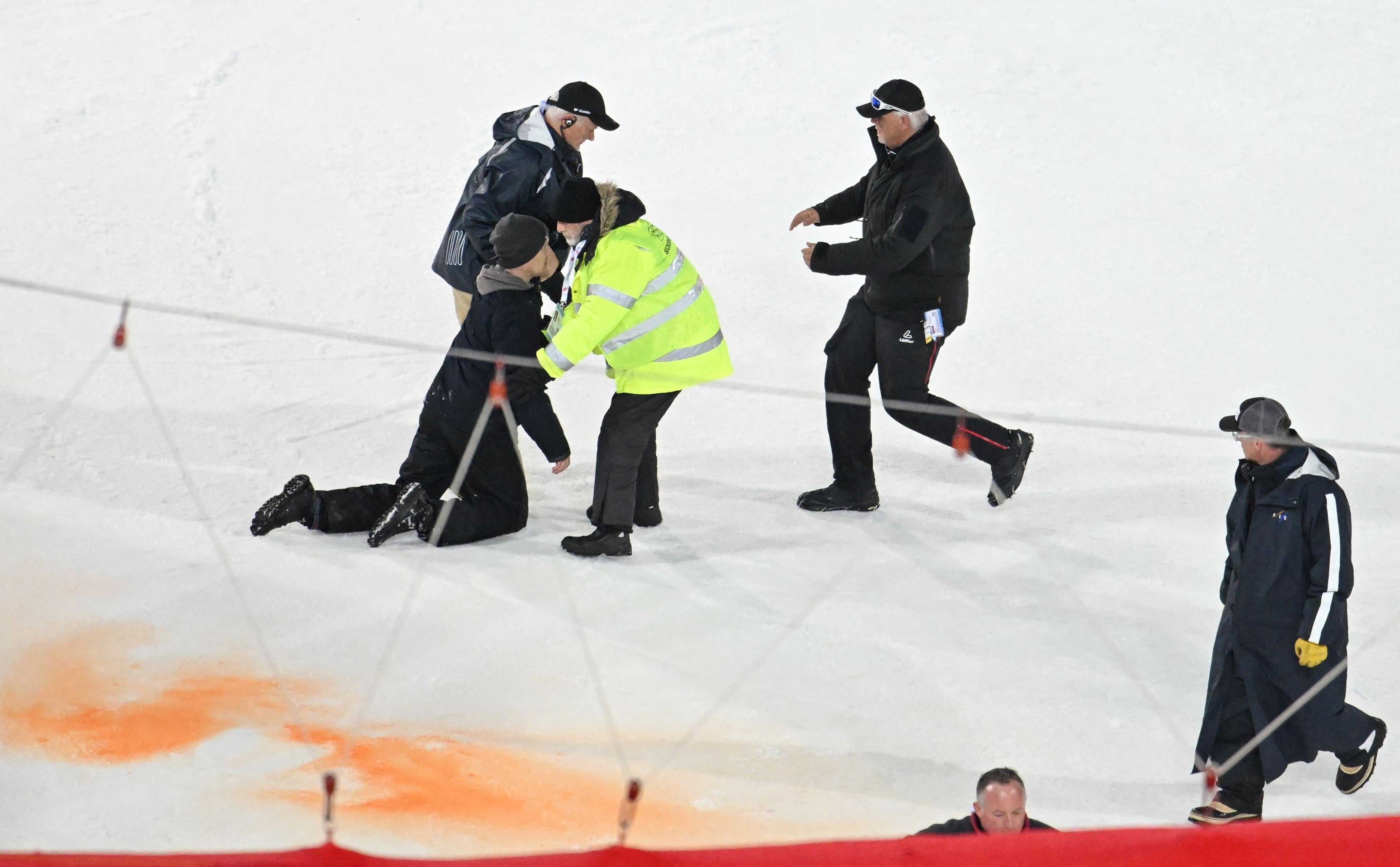 Die ersten 30 Läufer des 1. Durchgangs im Schladminger Nightrace waren bereits im Ziel, als sich ein Klima-Aktivist in den Zielraum schmuggelte und dort mit oranger Farbe um sich sprühte. Die Folge: das Rennen musste für ein paar Minuten gestoppt werden, was aber nicht groß ins Gewicht fiel, da nach 30 Läufern ohnehin eine Pause ist. Die Aktion war bereits nach nicht einmal einer Minute wieder beendet und der Aktivist wurde aus dem Ziel eskortiert.