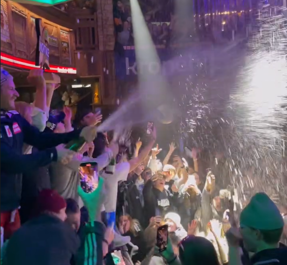 Wie groß die Erleichterung war zeigte sich auch bei After-Party in der Tenne Schladming. Gemeinsam mit dem norwegischen Sieger Haugan ließen es unsere Asse richtig krachen. Ein Insta-Video von Haugan Teamkollegen McGrath ging sofort viral. Mittendrin bei der Champagner-Party: Manuel Feller und Fabrio Gstrein.