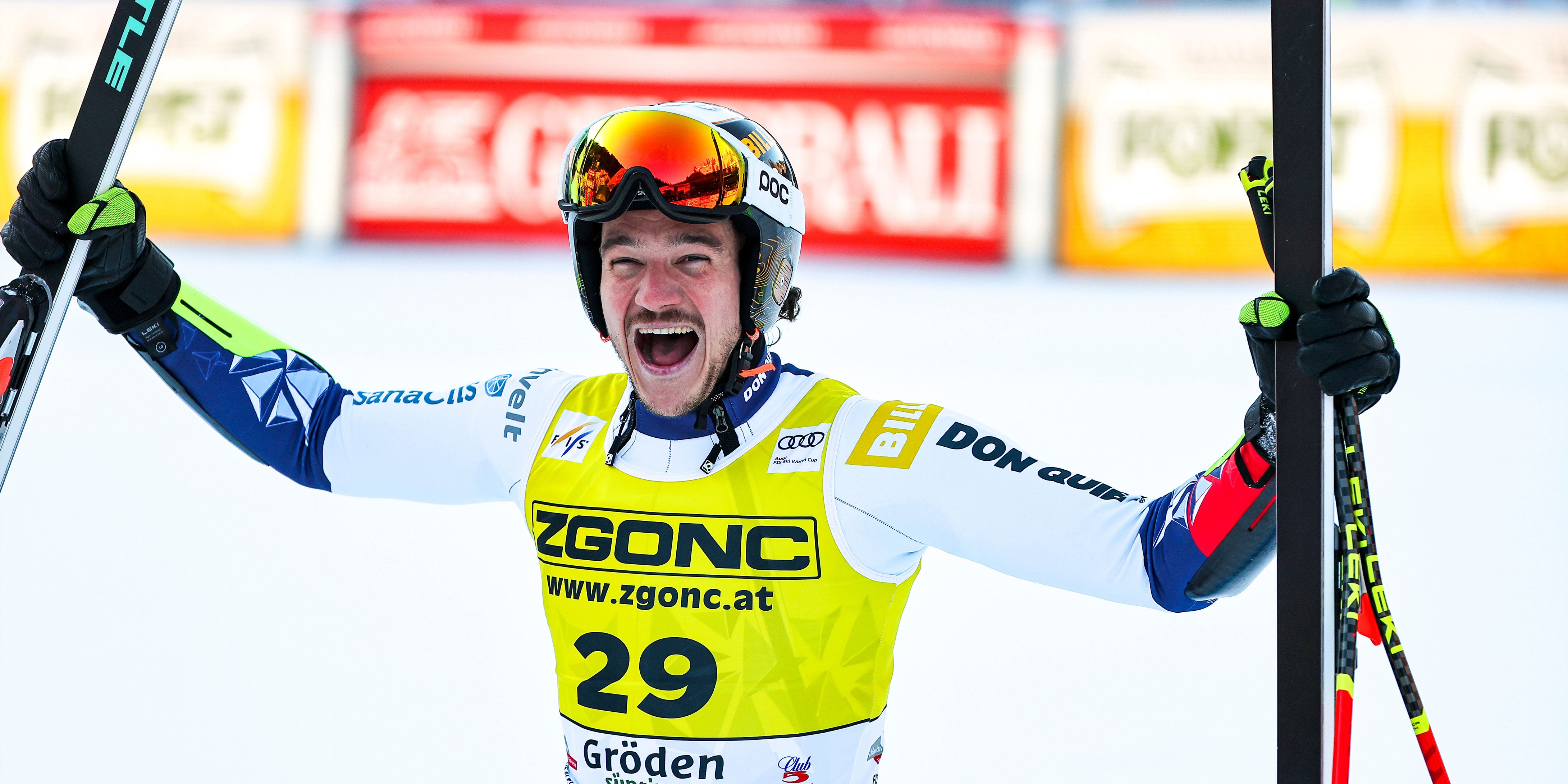 Lange Zeit sah es so aus als wäre Marco Odermatt auch im Super-G von Gröden unschlagbar, doch mit Nummer 29 fährt plötzlich Jan Zabystran eine irre Fahrt und schummelt sich vorbei (1:25:08).