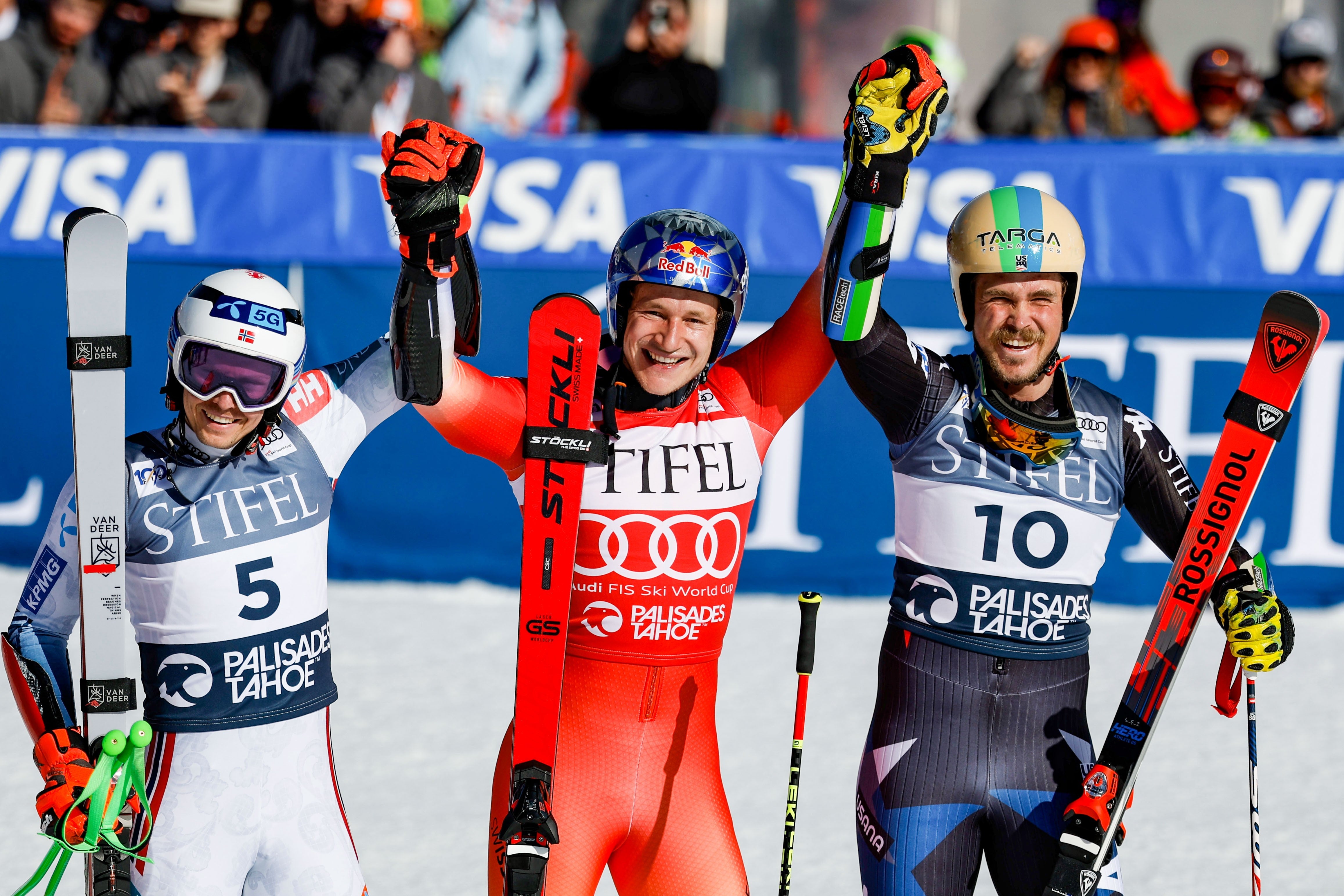 Der Schweizer hat damit seine Riesentorlauf-Siegesserie am Samstag weiter ausgebaut. Der Norweger Henrik Kristoffersen und US-Lokalmatador River Radamus besetzten die weiteren Stockerlplätze. Raphael Haaser schaffte als Siebenter sein bestes Riesentorlauf-Ergebnis.