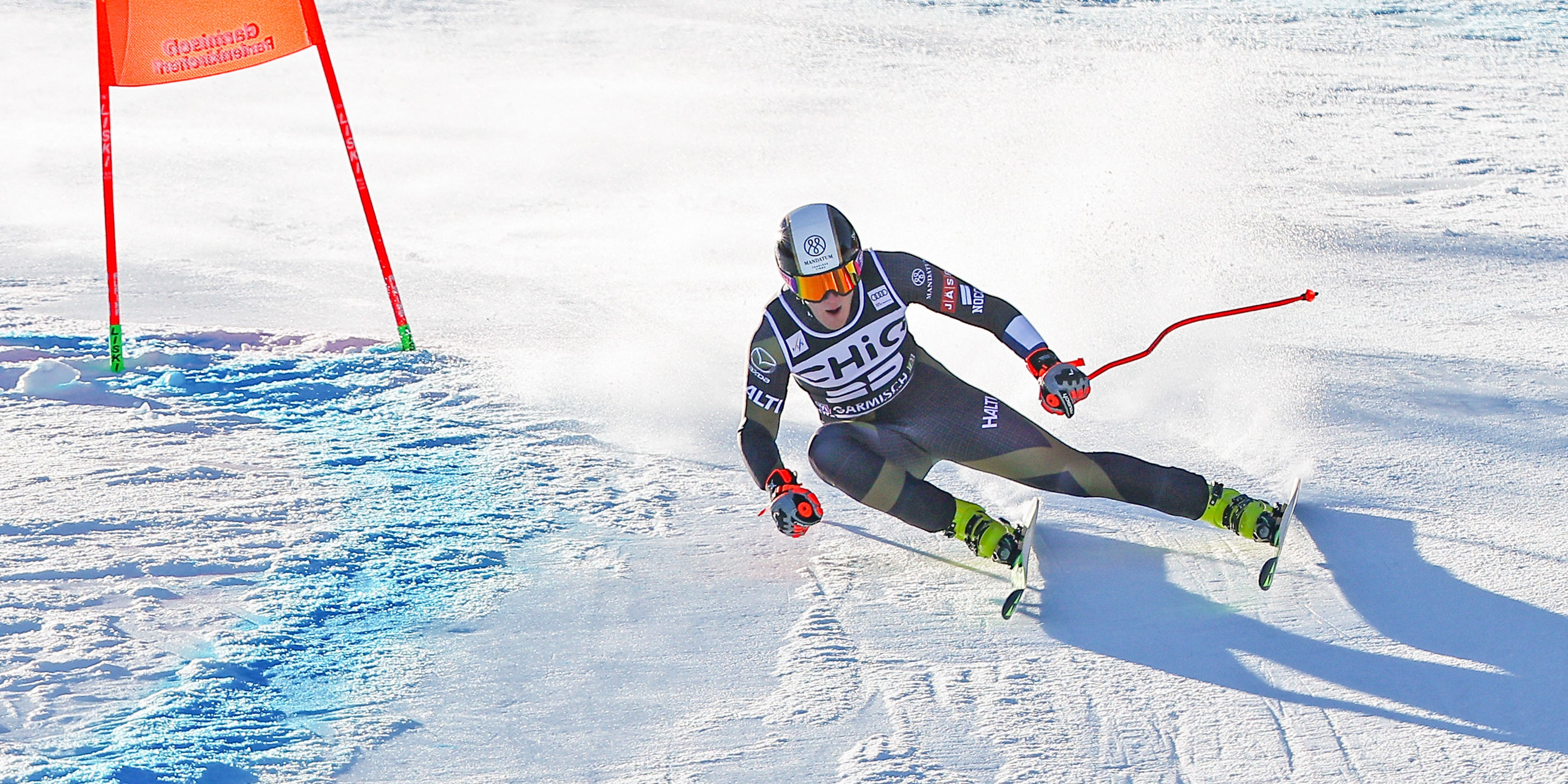 Auch Kitzbühel-Sieger Giovanni Franzoni kam zu Sturz, nachdem sich im oberen Teil ein Ski löste. Der Italiener blieb jedoch unverletzt.