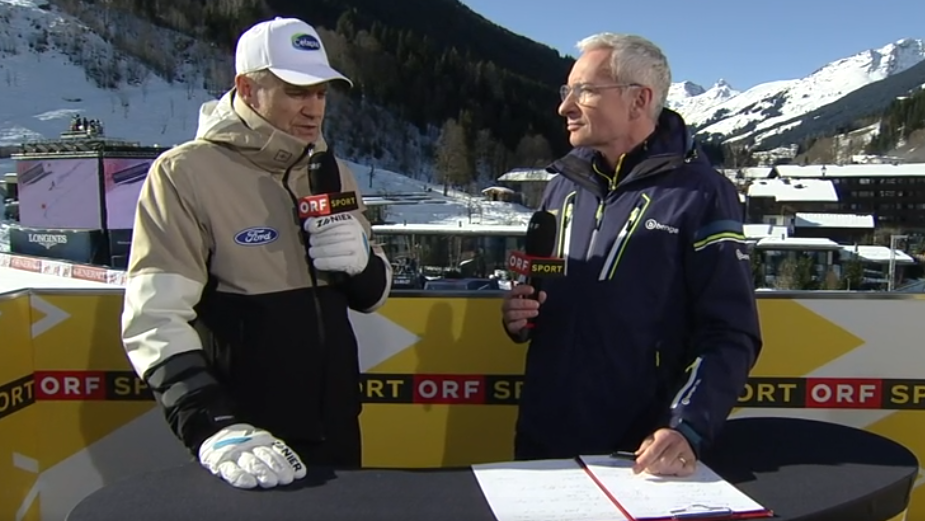 Star-Analytiker Armin Assinger und Pariasek begrüßten die ORF-Zuschauer aus dem Zielraum. Der Kärntner stellte die Strecke vor - beim Weltcup-Finale im Vorjahr fiel das Rennen witterungsbedingt aus. Daher sehen wir den Lauf zum ersten Mal.