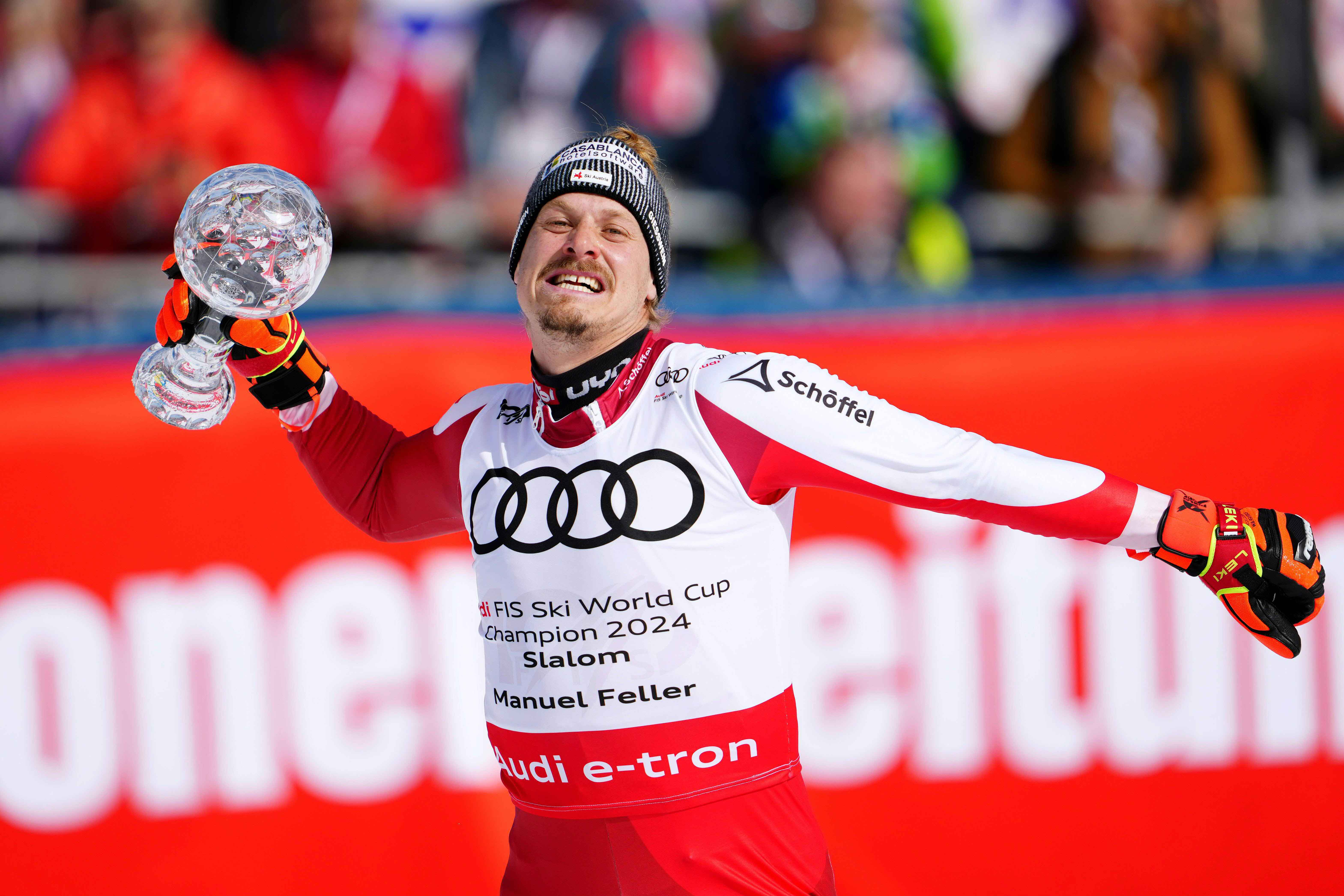 Mit stehenden Ovationen wurde Feller bei der "Sport und Talk"-Sendung im Hangar-7 empfangen. Mit dabei hatte der Fieberbrunner die begehrte Glaskugel, mit der er den ÖSV-Herren schon vor dem Weltcup-Finale in Saalbach die Saison gerettet hatte.