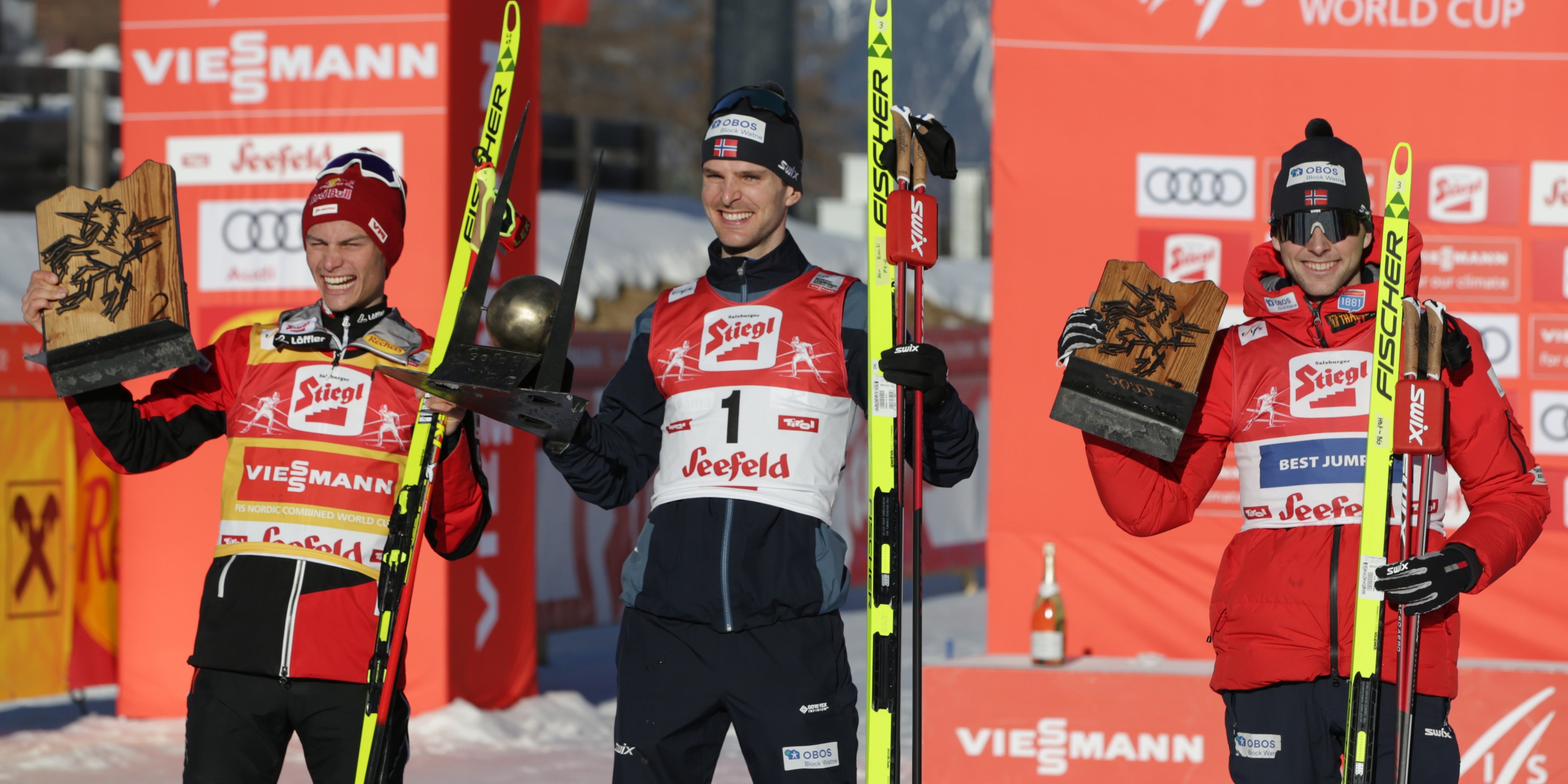Lamparter, der im Langlauf die beste Zeit erzielte, zeigte sich unmittelbar danach im ORF-Interview hochzufrieden. "Ein megageiler Tag. Ich bin sehr happy mit dem zweiten Platz, besser kann ich mir den Heim-Weltcup nicht vorstellen." Graabak sprach von einem "harten Rennen. Lamparter war so stark, so schnell. Wir hatten am Ende einen super Fight."