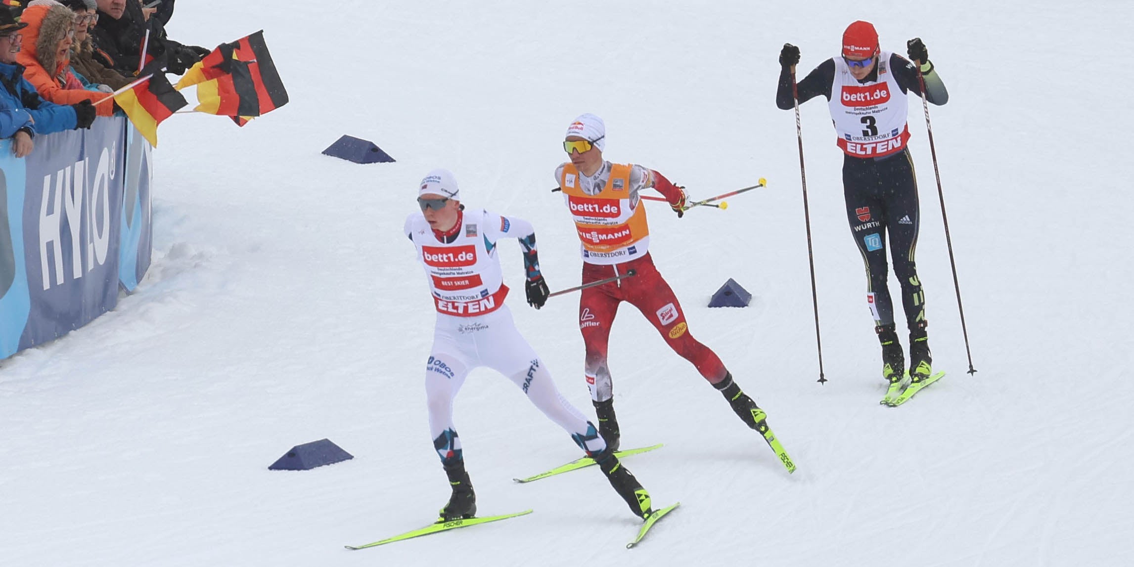 Der Tiroler Lukas Greiderer wurde in erneuter Abwesenheit des Norwegers Jarl Magnus Riiber nach Sprung-Rang zehn im Zielsprint mehrerer Athleten Zwölfter (+48,8), der Steirer Martin Fritz 14. (+52,0) und der Salzburger Sprung-Sechste Mario Seidl 15. (+1:07,6). Lamparter war mit 14 Sekunden Rückstand in die Loipe gegangen, hat recht rasch die Führung übernommen und Tempo gemacht. Erst auf Kilometer acht ging auch Oftebro an die Spitze, im Zielsprint war der Norsker dann nicht zu biegen. Lamparter hat zehn der vergangenen elf Weltcup-Bewerbe in den Top Zwei beendet.