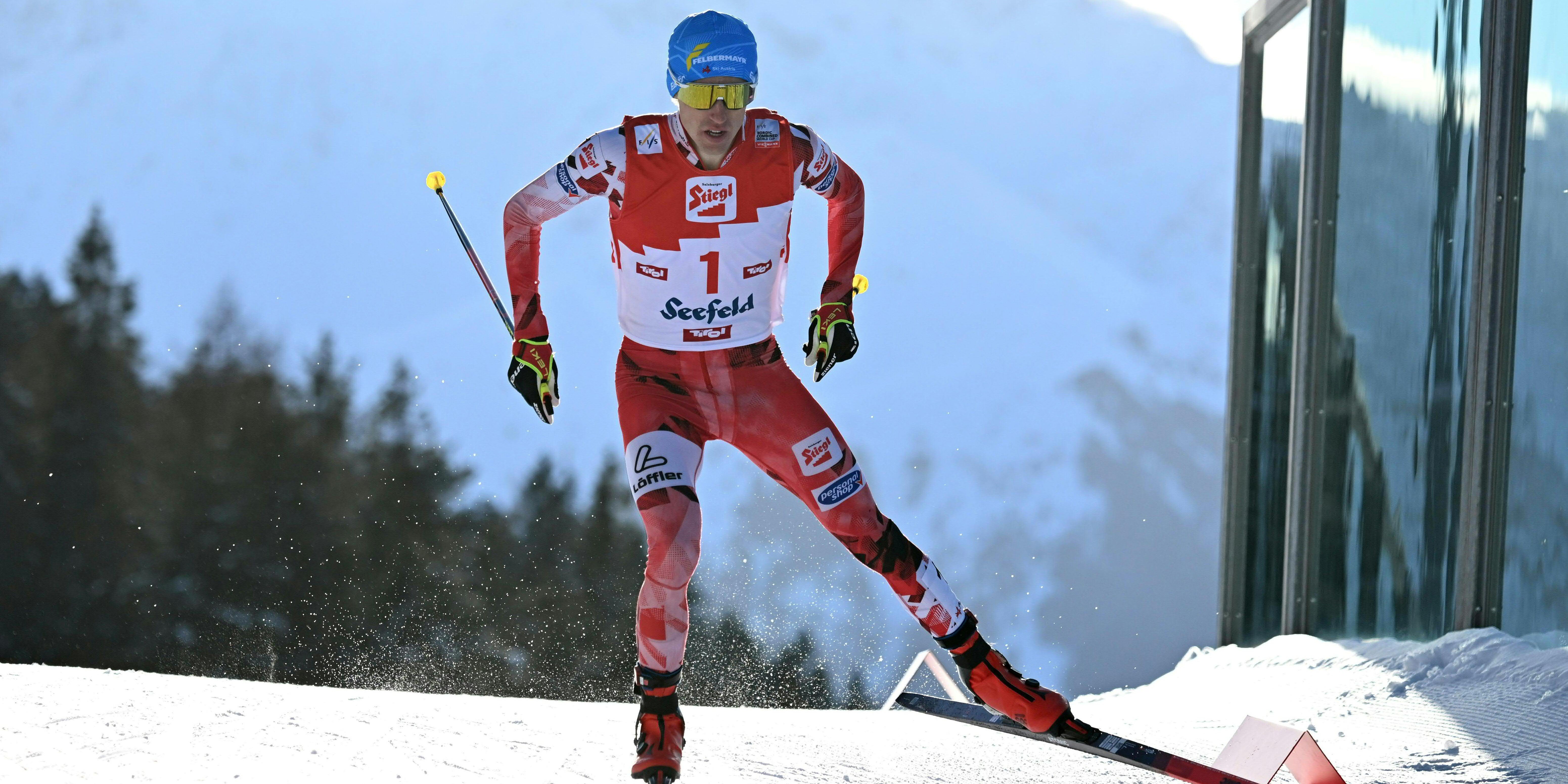 Der 23-Jährige musste am Sonntag im Langlauf über 12,5 km nach langer Soloführung erst auf den letzten Metern den Norweger Jens Luraas Oftebro vorbeiziehen lassen. Weltcupspitzenreiter Johannes Lamparter landete im letzten Rennen vor den Olympischen Spielen hinter dem deutschen Triple-Titelverteidiger Vinzenz Geiger und Einar Luraas Oftebro auf Rang fünf.