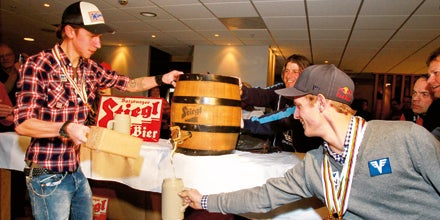 Gäbe es Kategorie „Biertrinken“ bei dieser WM, wäre für Österreich mit Sicherheit die fünfte Goldmedaille bestimmt. Denn bei vier Medaillenfeiern floss das kühle Blonde von Sponsor Stiegl in Strömen. Die nordischen Kombinierer hatten Glück. Erst nach ihrem Goldrausch war das Bier aus.