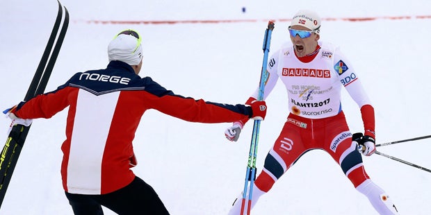 An Norwegens Herren-Langlaufstaffel war bei der WM in Lahti kein Vorbeikommen. Didrik Tönseth, Niklas Dyrhaug, Martin Johnsrud Sundby und Finn Haagen Krogh eroberten am Freitag über 4 mal 10 Kilometer die neunte Goldmedaille für Norge in dieser Disziplin in Serie.