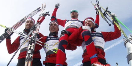 Schlussmann Petter Northug sorgte für Eklat: Er stieg provokant über die Zielliene, so groß war sein Vorsprung.