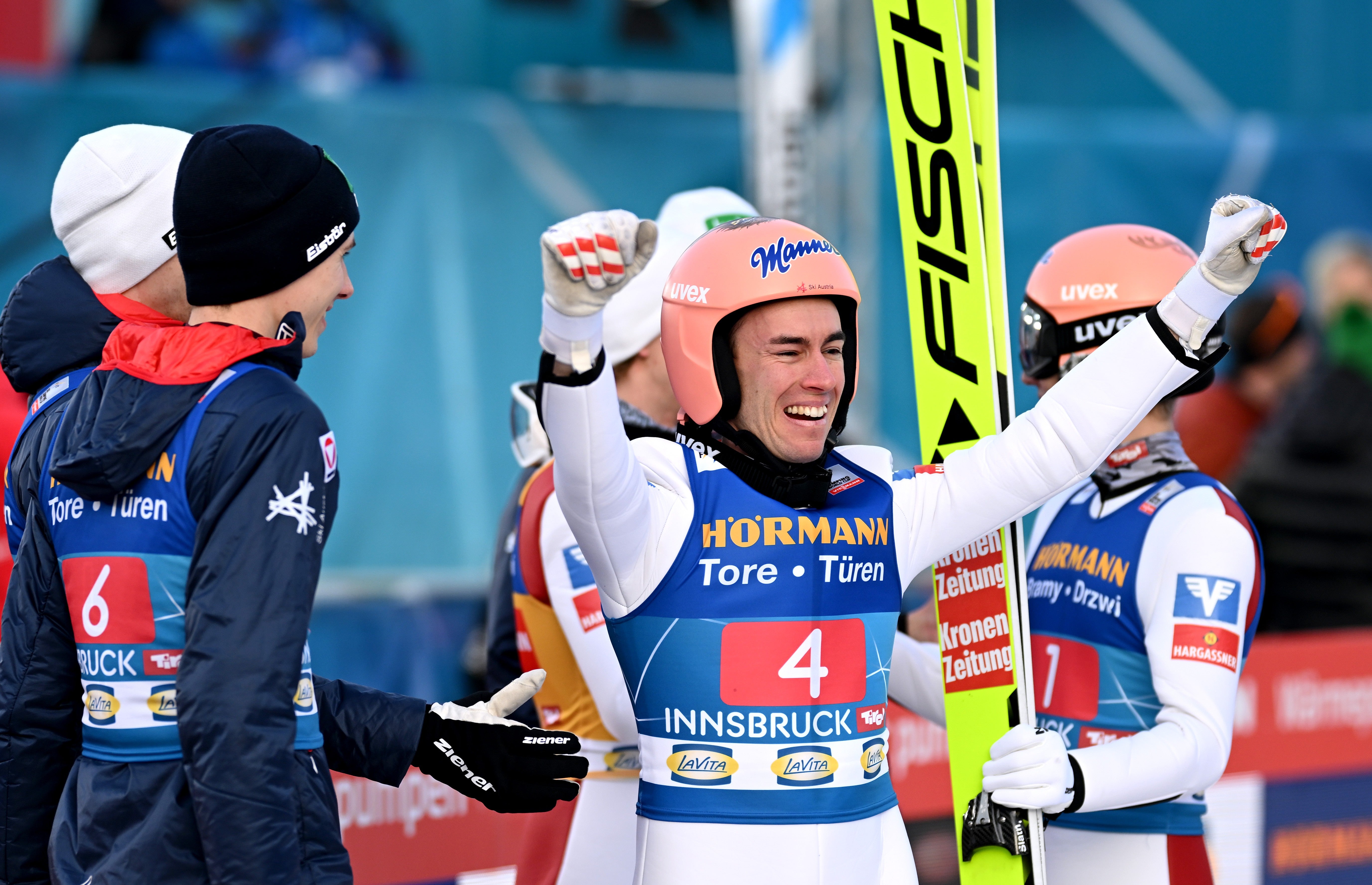 - Österreichs Skispringer bleiben aktuell auf den Schanzen und im Besonderen bei der Vierschanzen-Tournee eine Macht: Im Dreikampf der ÖSV-"Superadler" setzte sich am Samstag in Innsbruck Weltcup-Titelverteidiger Stefan Kraft hauchdünn um 1,4 Punkte vor Vorjahressieger Jan Hörl und dem bisherigen Tourneeleader Daniel Tschofenig durch. Kraft übernahm mit seinem ersten Innsbruck-Sieg, dem insgesamt 45. Weltcupsieg, auch die Führung in der Gesamtwertung.