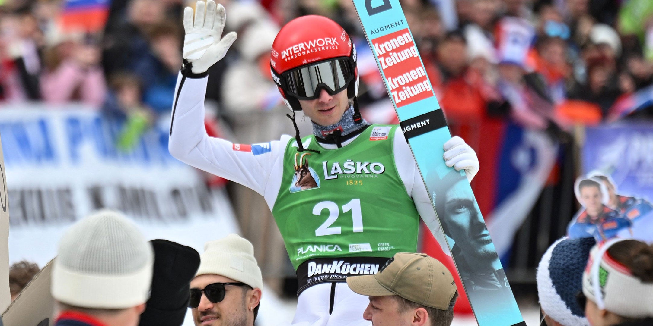 Im zweiten Flug setzte er bei 230 Metern ab, was sogar den sechsten Platz bedeutet hätte. In der Gesamtwertung war es dann aber immerhin der Neunte. Nach seinem zweiten Sprung wurde er von seinem Team herzlichst verabschiedet.