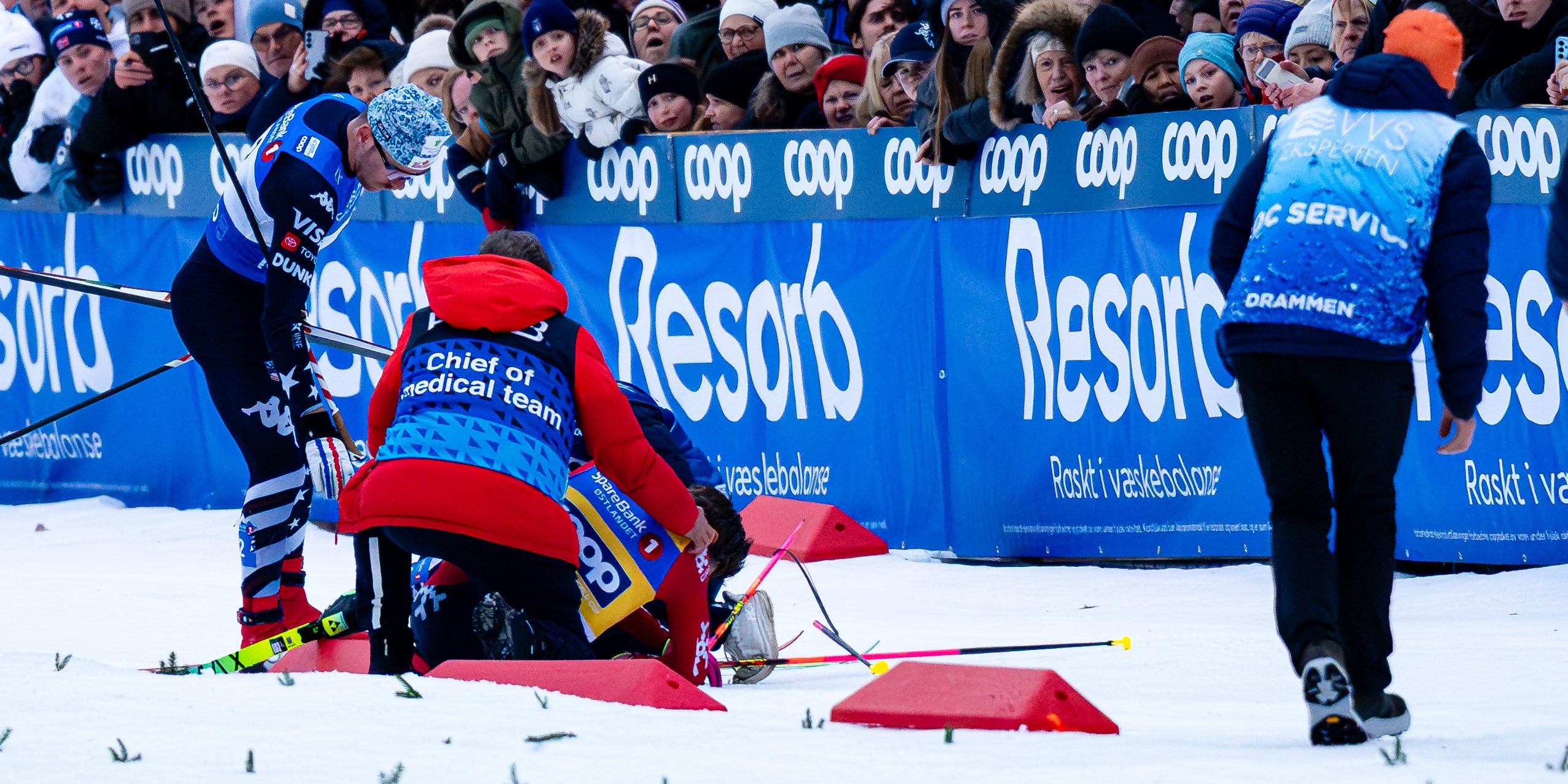 Kläbos Sturz war so massiv, dass sich der Norweger mit einem Rettungswagen ins Spital zu einem Check bringen ließ. In den Sturz waren vier von sechs Läufern verwickelt, Kläbo geriet mit dem US-Amerikaner Ben Ogden aneinander. Er stürzte mit dem Hinterkopf auf den Schnee. "Es ist unglaublich eisig da draußen. Ich hab das Gleichgewicht verloren und bin einfach gestürzt", schilderte Ogden. Kläbo blieb vorerst bäuchlings im Schnee liegen, ehe er aufstand und von der Strecke geführt wurde.