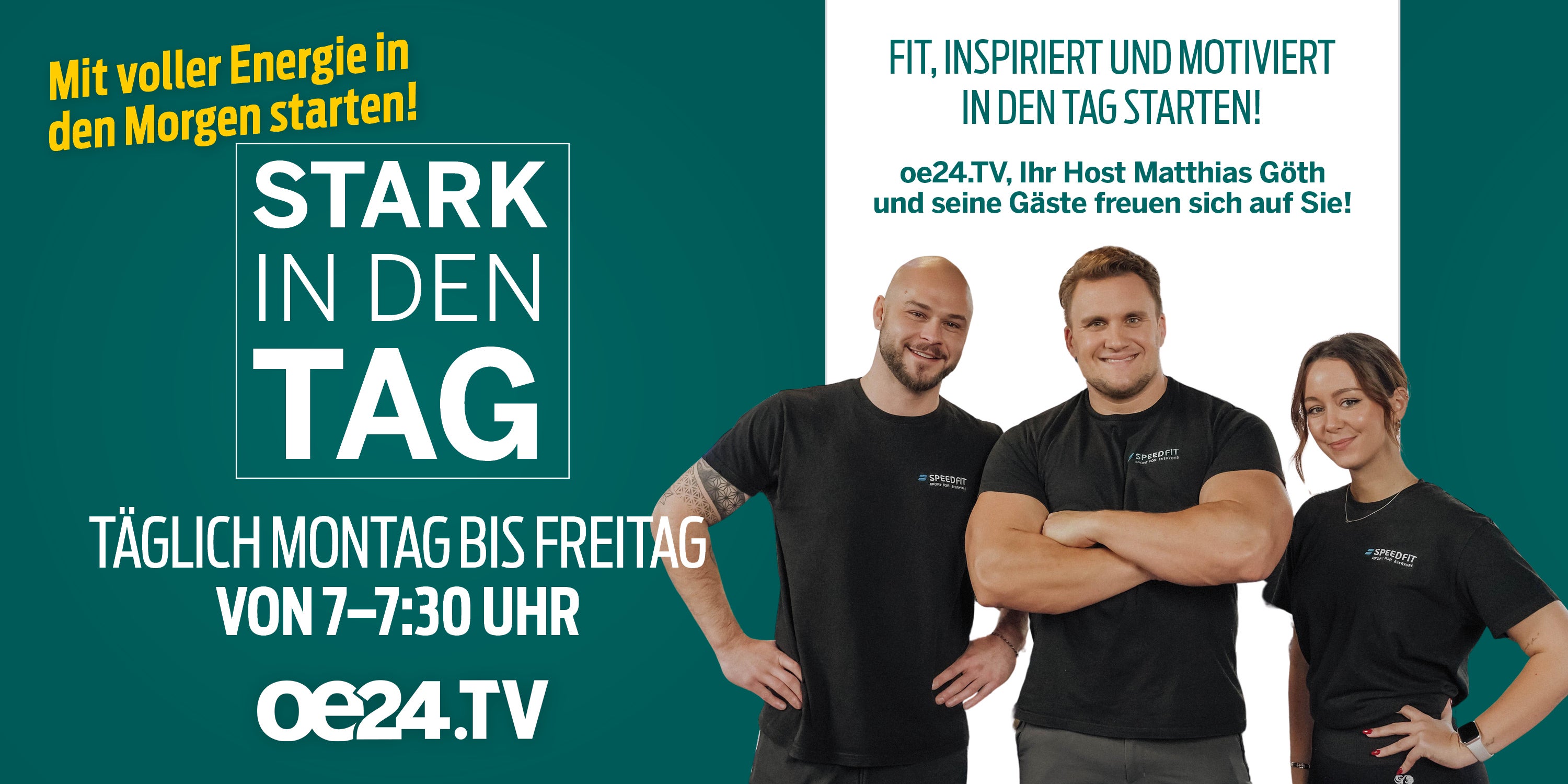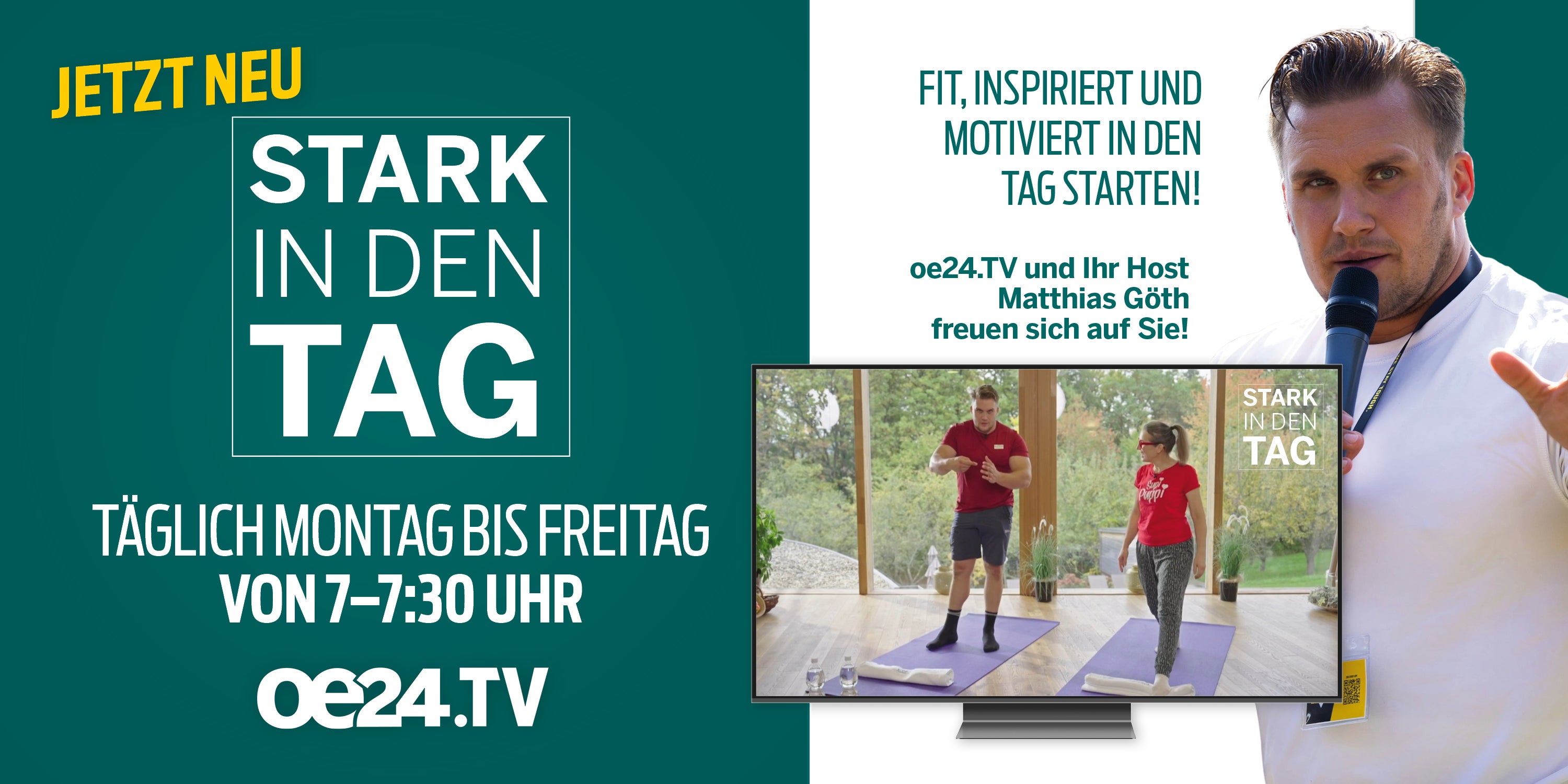 „Stark in den Tag“ ist die neue tägliche Sport- und Lifestylesendung auf oe24.TV. Moderator Matthias Göth (Unternehmer, Charity-Visionär und Strongman) bringt Österreich täglich Montag bis Freitag ab 07:00 Uhr in Schwung – mit einfachen Übungen zum Mitmachen, inspirierenden Gästen und spannenden Gesundheitstipps. Jede Folge bietet neue Schwerpunkte rund um Fitness, Ernährung und Wohlbefinden. Neben motivierenden Workouts erwarten die Zuseher:innen ein informativer Wissensblock zu aktuellen Gesundheitsthemen sowie der beliebte Mythencheck, der Fakten und Fitnessweisheiten auf den Prüfstand stellt.