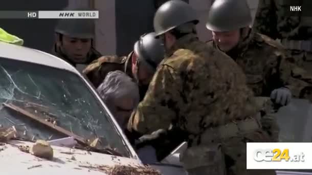 Drei ältere Menschen werden erfolgreich aus einem verschütteten Autowrack geborgen.