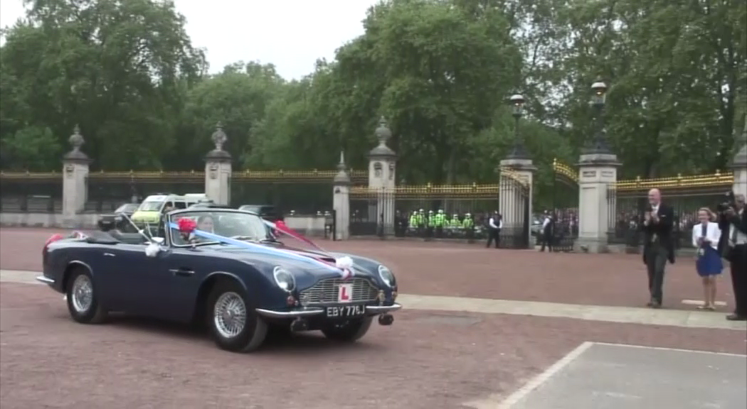Kate & William verlassen den Buckingham Palace im flotten Aston Martin Cabriolet.