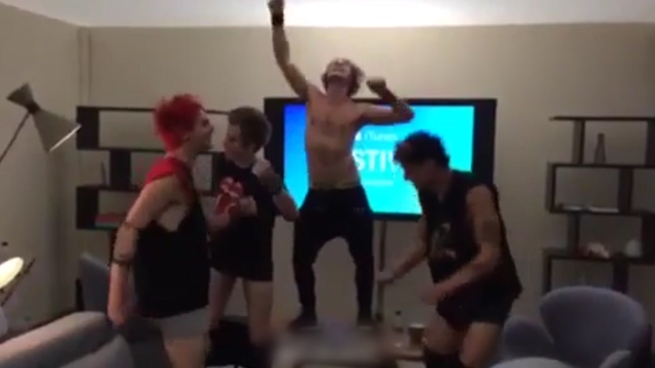 Die Band '5 Seconds Of Summer' tanzt gut gelaunt im Hotelzimmer.
