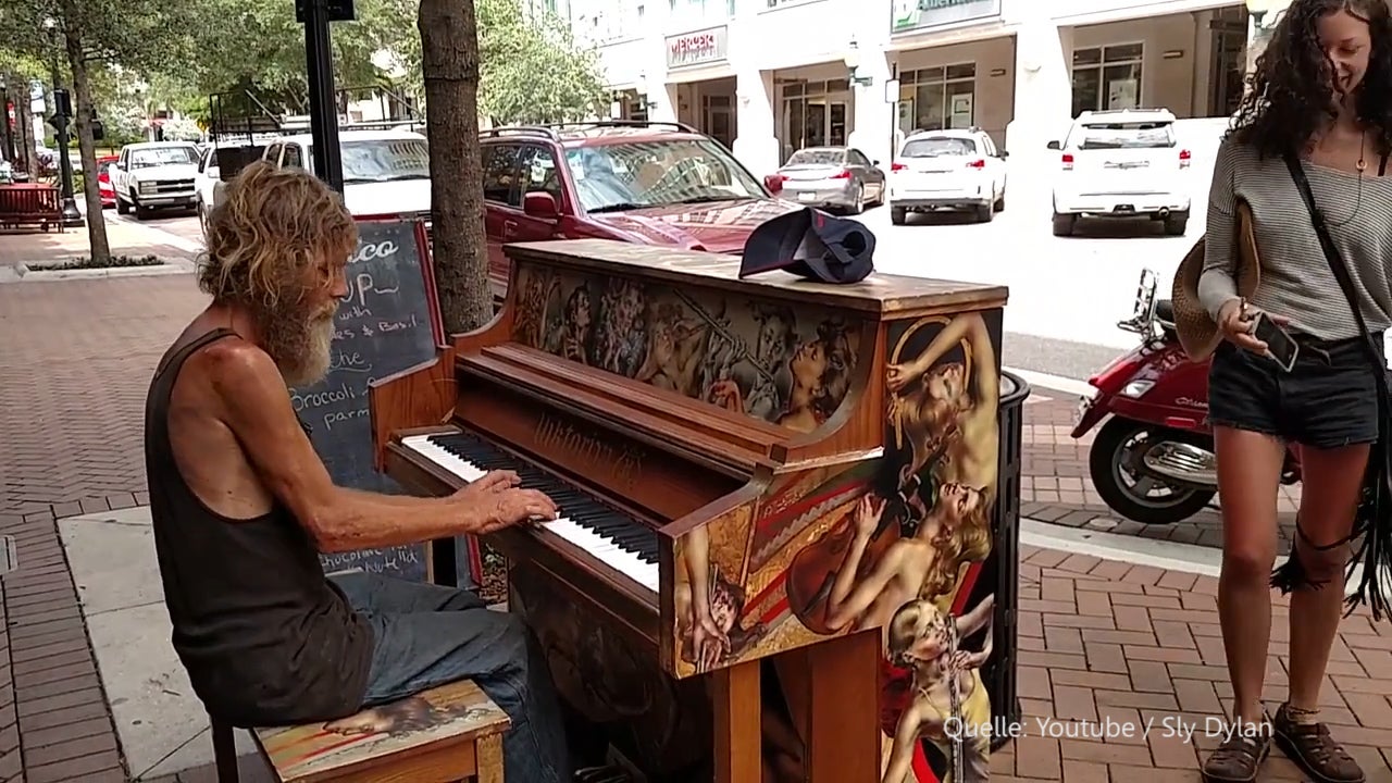 Ein obdachloser Mann hat in den USA Passanten mit einem Lied zu Tränen gerührt.