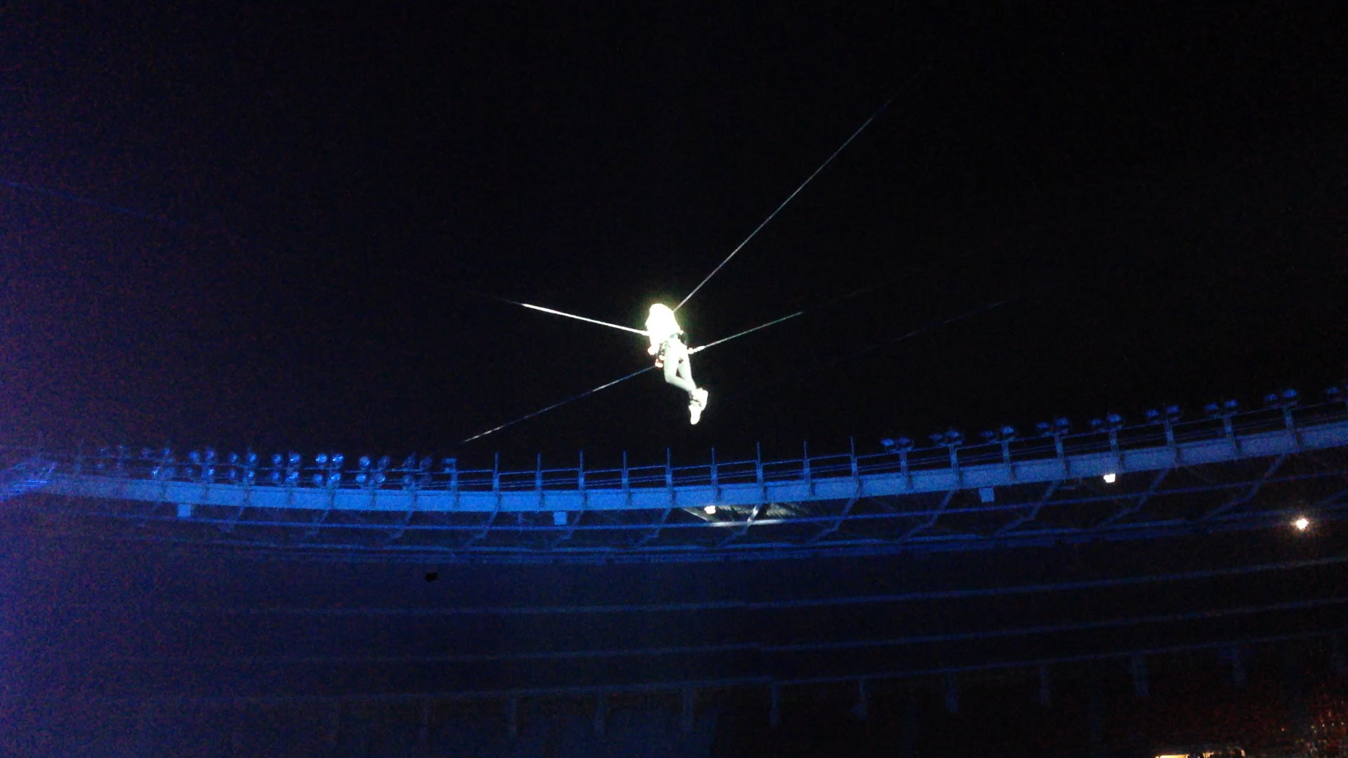 Beim Konzert in Wien wusste der Superstar mit dieser Flugeinlage zu begeistern.