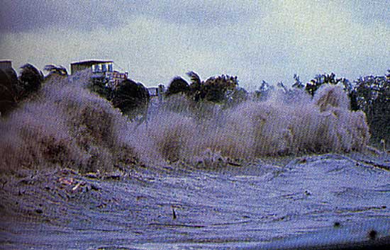 Nach dem Erdbeben errreicht die erste Horrorwelle das Festland. Hunderte Boote, Autos und andere Gegenstände werden wie Spielzeug zerdrückt und ins Landesinnere geschoben