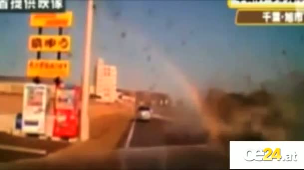 Autofahrer filmt den exakten Moment, in dem die Tsunamiwelle sein Auto verschlingt