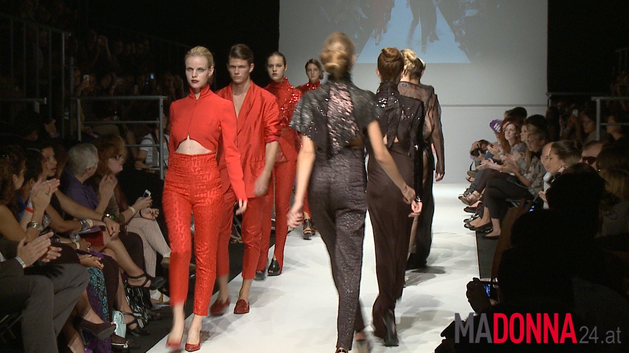 Bei den Frauen dominierten Mustermix, gekonnte Nähte und auch viel Transparenz. Ein durchsichtiger Hosenanzug sorgte für tiefe Einblicke.