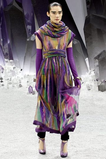 Für die Herbst/Winter-Show 2012 von Chanel verwandelte Karl Lagerfeld den Grand Palais in eine funkelnde Kristallwelt mit einem Laufsteg, der von üppigen Bergkristallen und silbernem Sand geschmückt wurde.
