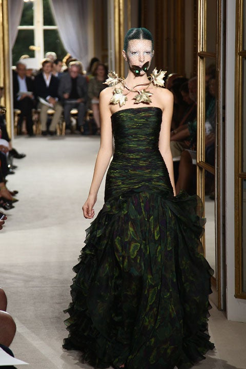 Blumen und Blüten dominieren die Haute Couture FW 2012-13 Kollektion von Giambattista Valli. Die Gesichter zauberhaft hinter zarten Schleiern verhüllt wurden die Models zu Elfen der Natur. (Quelle ELLETVFASHION)