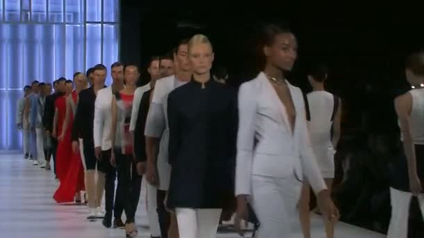 Die Show stand unter dem Motto "Poetic Tailoring" und zeichnete sich durch minimalistische Schnitte aus, die mal oversized, mal hauteng ausfielen und mit grafischen Mustern sowie Metallic-Effekten geschmückt waren.