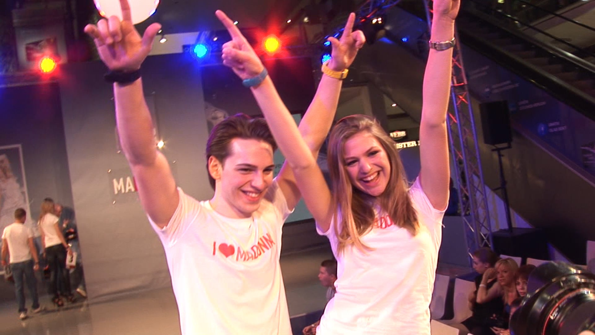 Der 7. Madonna Model Contest feierte ein bombastisches Finale im Donau Zentrum Wien. Madonna und Chris Singer blicken erfreut auf das Cover Shooting mit Nina Authried & Karl Wagner.