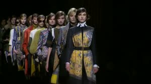 Ebenso prächtig wie das Interieur zeigten sich auch die Entwürfe des belgischen Designers, die in dieser Saison mit asiatisch inspirierten Motiven wie Drachen oder Blüten im Patchwork-Look bedruckt waren.