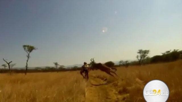 Mountainbiker Evan van der Spuy fuhr als Teilnehmer eines Radrennens gerade durch die südafrikanische Steppe, als eine Antilope ihn plötzlich vom Sattel rammt.