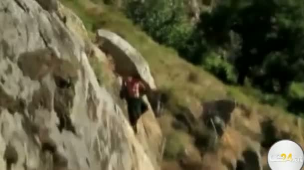 The Devils Punch Bowl in Kalifornien ist ein gefährlicher Ort, der junge Touristen immer wieder zu Mutproben animiert. Auch dieser junge Mann konnte es offensichtlich nicht lassen, auf die raue Felswand in rund 30 Meter Höhe zu klettern, um sich von dort in die Tiefe zu stürzen.