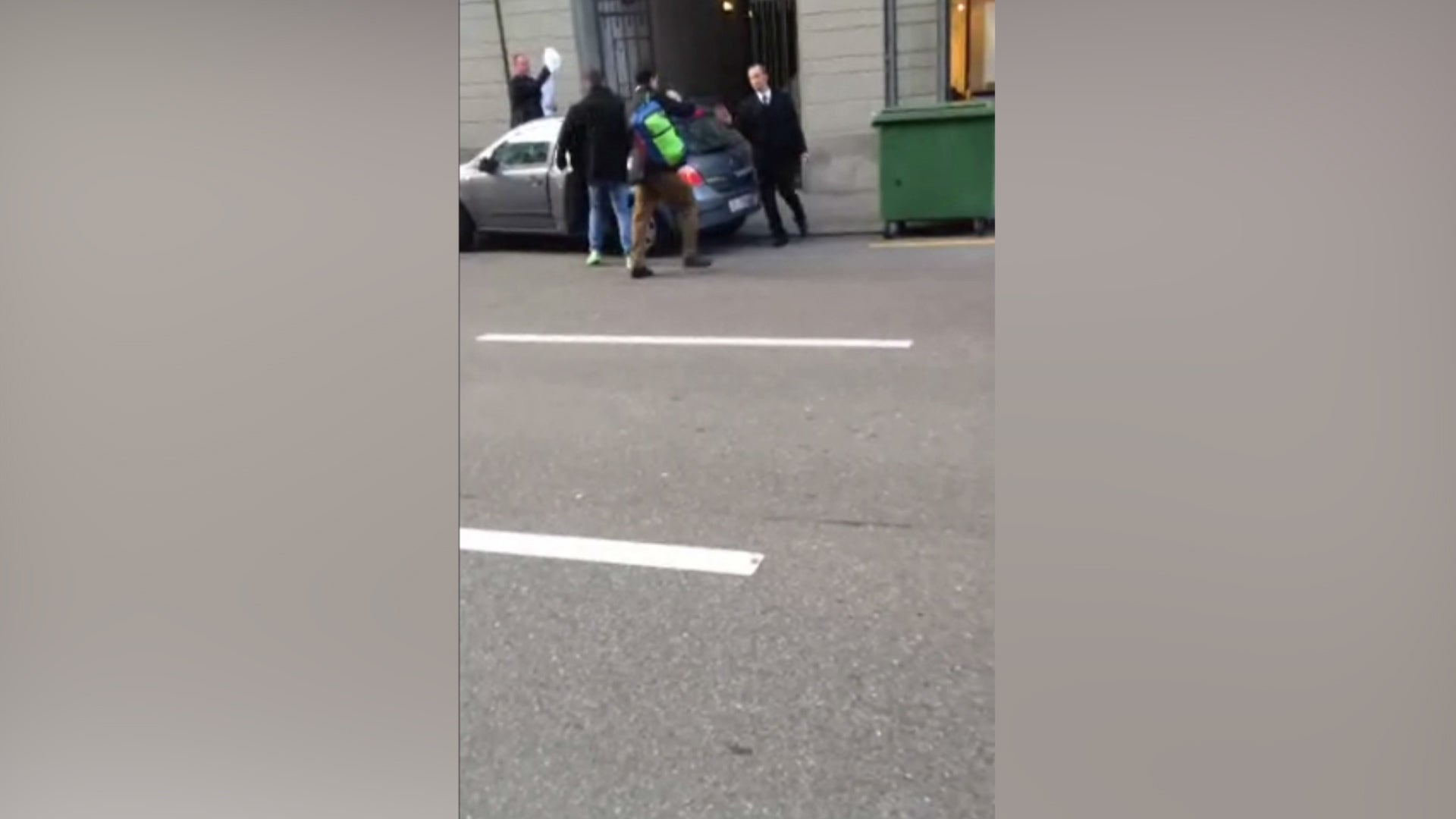 Hotelmitarbeiter verwenden Blätter um die Beamten zu verstecken.