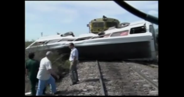300 Meter weit hatte ein Güterzug in der argentinischen Provinz San Luis diesen Schulbus mitgerissen. Dabei starben am Mittwoch 6 Passagiere