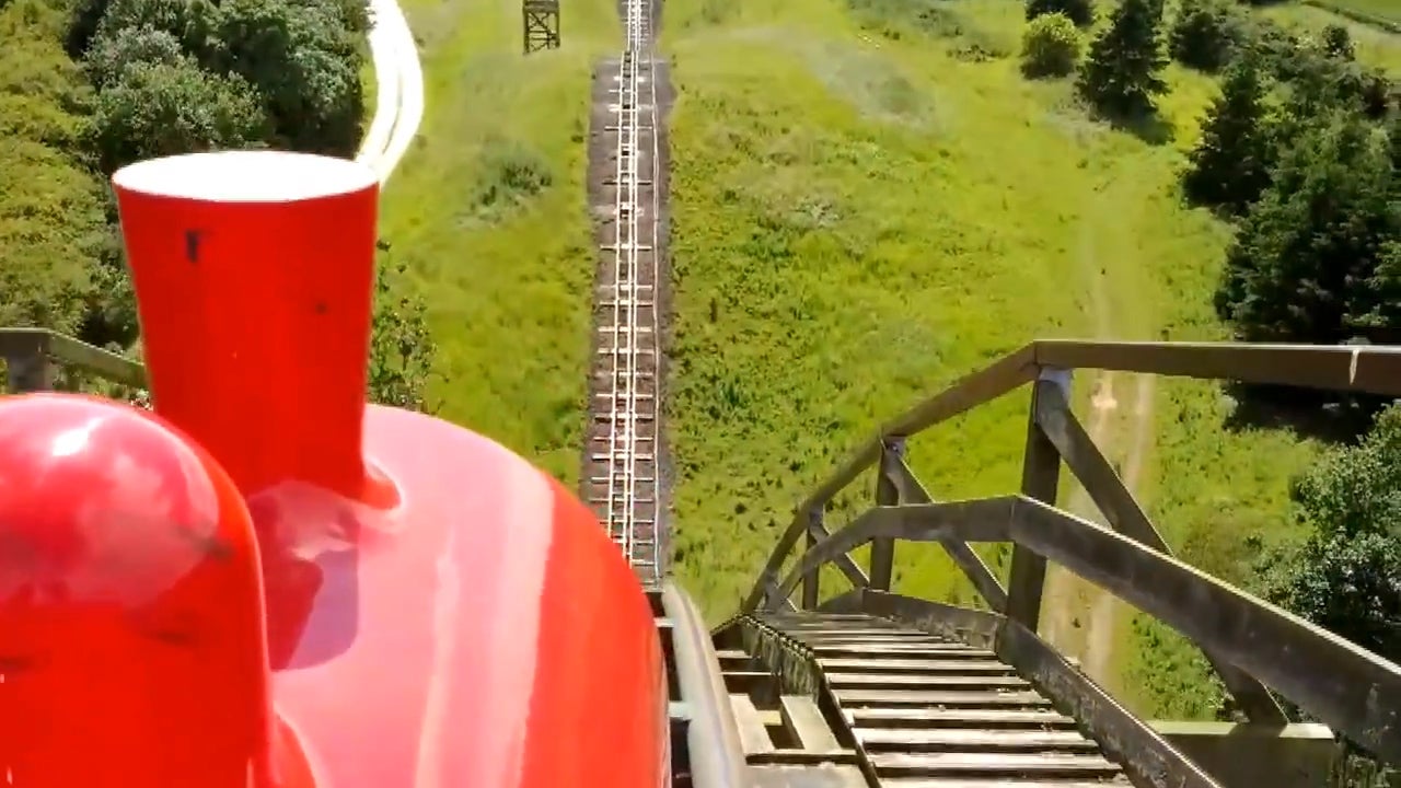 Der "Ultimate Rollercoaster" im Lightwater Valley Park aus der Egoperspektive.