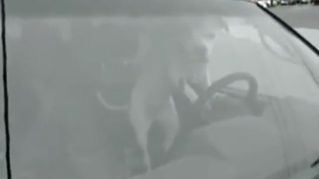 Wer seinen Hund zu lange im Auto allein lässt, muss sich nicht wundern, wenn der irgendwann sauer wird - diesem hier scheint die Geduld wohl ausgegangen zu sein und tritt fleissig auf die Hupe ein.