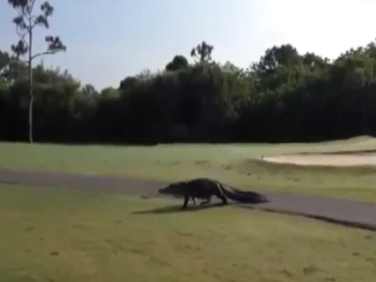 Englewood, Florida- mitten auf einem Golfplatz taucht ein Alligator auf, die Spieler interessant das nicht.