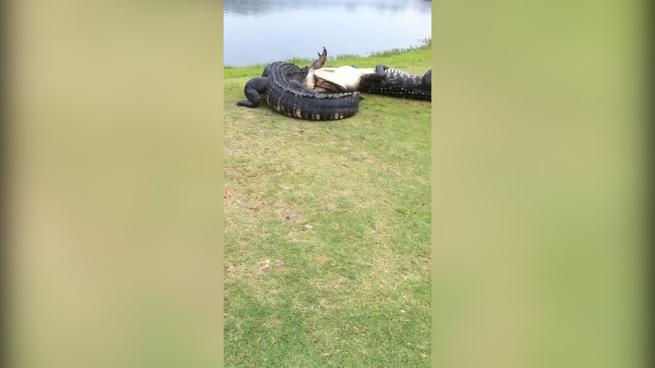 In Florida liefern sich zwei ausgewachsene Alligatoren einen Zweikampf.