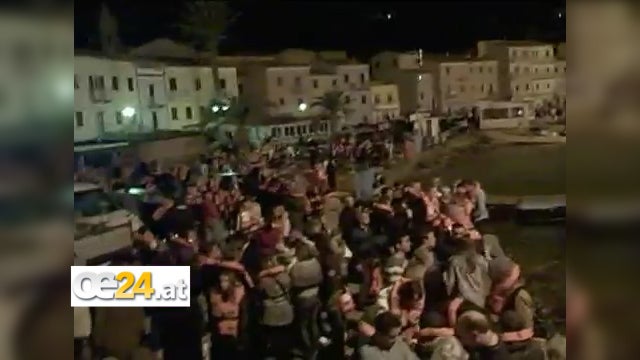 In dem Video sind hunderte Passagiere der auf Grund gelaufenen 'Costa Concordia' zu sehen, die in einem Boot an die toskanische Küste gebracht werden.