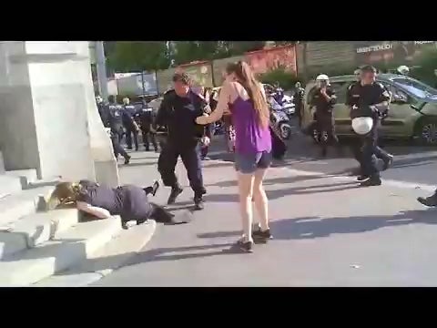 Bei dem Protest gegen die Abschiebung von 8 Flüchtlingen in Wien kam es zu einem Zwischenfall, der für große Aufregung sorgt. Ein Video auf YouTube zeigt das Einschreiten eines Polizisten, der eine Aktivistin rempelt, die auf dem Gehsteig läuft. Die Frau stürzt und schlägt mit dem Kopf auf den Stufen eines Gebäudes auf.