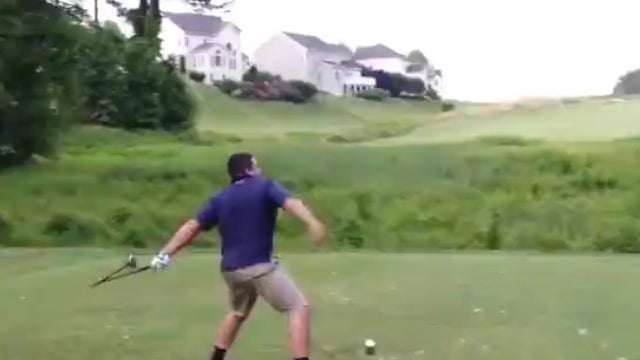 Sehr unsportlich reagiert dieser Golfspieler. Über einen verschlagenen Ball ärgert sich der Mann derart, dass er völlig ausrastet und seinen Schläger durch die Luft schleudert. Pech für den Kameramann, der davon getroffen wird.