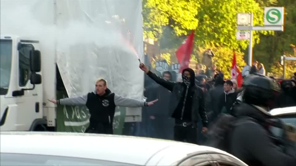 In Altona ging die Polizei gegen Teilnehmer des Zuges „Hamburg sieht rot" mit Wasserwerfern vor.